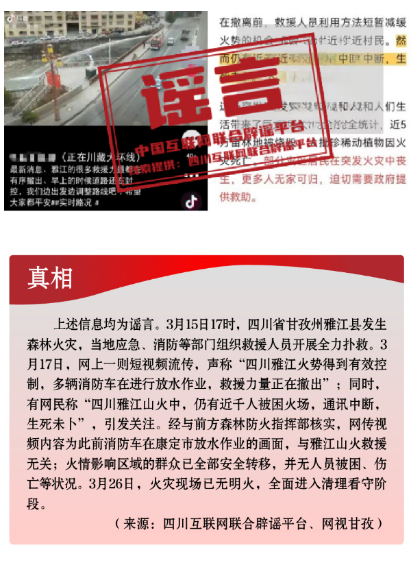 - 打擊網絡謠言 共建清朗家園 中國互聯網聯合辟謠平臺2024年3月辟謠榜