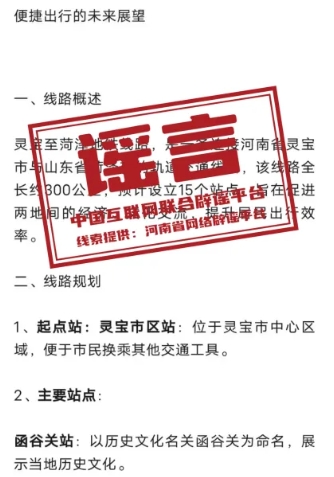 ??真相:近日,有自媒體賬號在互聯網平臺發布“靈寶到菏澤的地鐵”相關信息,稱“該線路全長約300公里,預計設立15個站點”“起點站為靈寶市區站,位于靈寶市中心區域”,引發關注。經核實,該消息系虛假信息。互聯網不是法外之地,請自覺遵守法律法規,不造謠、不信謠、不傳謠。(來源:“清朗河南”微信公眾號、網信靈寶)