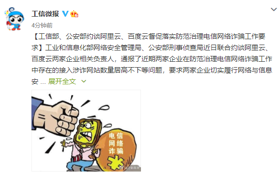 - 兩部門(mén)約談阿里云百度云:接入涉詐網(wǎng)站數(shù)居高不下